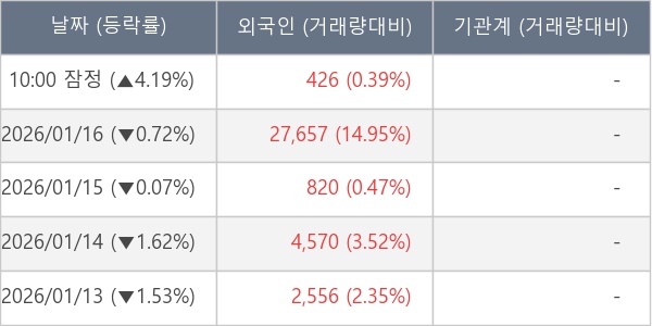 [표] 외국인ㆍ기관 순매매량 (단위 주)
