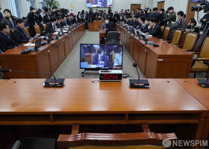 [서울=뉴스핌] 윤창빈 기자 = 19일 서울 여의도 국회에서 열린 재정경제기획위원회 전체회의에서 이혜훈 기획예산처 장관 후보자의 자리가 비어있다. 2026.01.19 pangbin@newspim.com