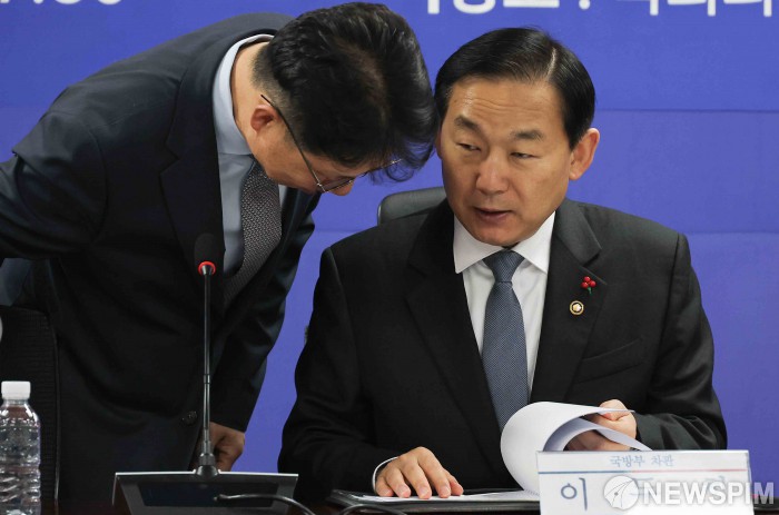 [서울=뉴스핌] 윤창빈 기자 = 이두희 국방부 차관이 20일 서울 여의도 국회 의원회관에서 열린 군용비행장 및 군사격장 소음피해대책 관련 당정협의에서 관계자와 대화를 나누고 있다. 2026.01.20 pangbin@newspim.com