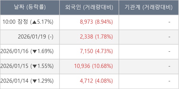 [표] 외국인ㆍ기관 순매매량 (단위 주)