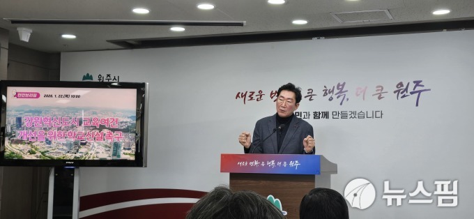 원 시장은 22일 원주시청 브리핑룸에서 열린 기자회견에서 "혁신도시 교육여건 개선을 위한 학교 신설은 더 이상 미룰 수 없는 과제"라며 "학생들의 학습권은 물론, 시민의 삶의 질과 직결된 생활 인프라 문제"라고 강조했다.