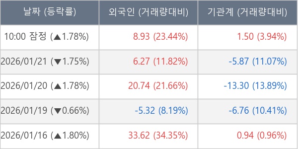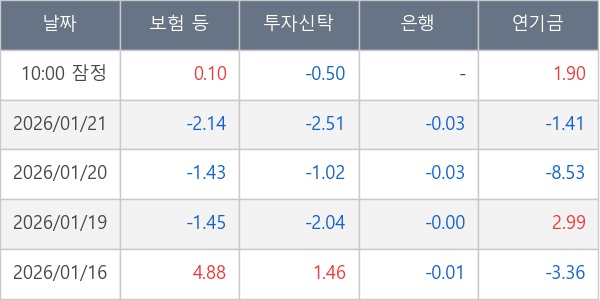 [표] 주요 기관별 순매매량 (단위 만주)