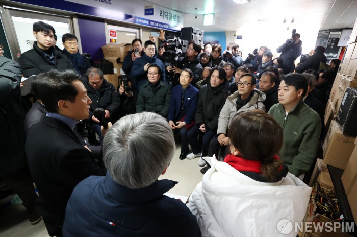 [서울=뉴스핌] 정일구 기자 = 용산전자상가 현장 점검에 나선 오세훈 서울시장이 22일 오전 서울 용산구 선인상가에서 열린 상가 소유자·상인·지역주민 현장 간담회에서 발언을 하고 있다. 2026.01.22 mironj19@newspim.com