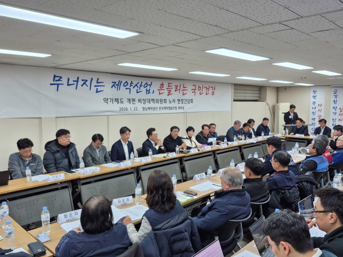[서울=뉴스핌] 김신영 기자 = 산업 발전을 위한 약가제도 개편 비상대책위원회(비대위)는 22일 경기도 화성시 향남읍에 위치한 한국제약협동조합 회의실에서 '정부 약가 개편안 관련 현장 간담회'를 개최했다.
