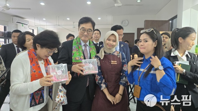 히잡을 쓴 인도네시아 여학생들이 알록달록한 네일팁(인조손톱)을 수줍게 내밀자 우원식 국회의장의 얼굴에 환한 미소가 번졌다.