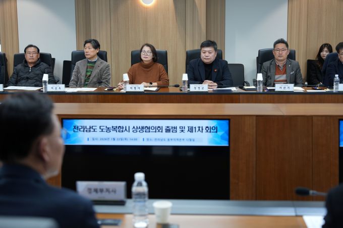 [무안=뉴스핌] 조은정 기자 = 전남도는 동부청사에서 '도농복합시 상생협의회' 위촉식과 제1차 정기회의를 개최하고, 도농 간 균형발전과 상생협력을 위한 논의를 본격화했다고 23일 밝혔다.