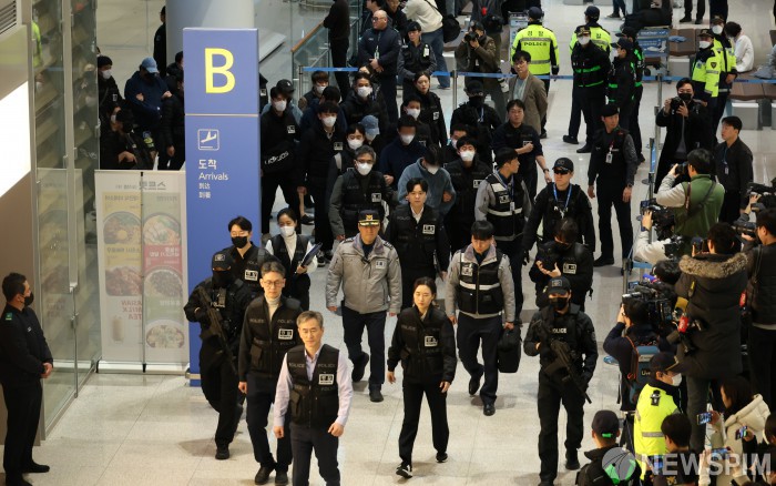 인천국제공항에서는 만일의 사태에 대비해 삼엄한 경비가 펼쳐졌다. 입국장에서 호송버스가 대기 중인 주차장으로 가는 통로까지 통제선이 설치됐다.
