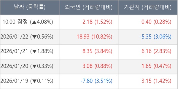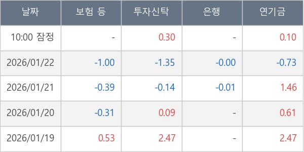 [표] 주요 기관별 순매매량 (단위 만주)