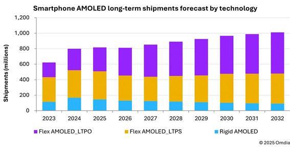 23일 시장조사업체 옴디아(Omdia)에 따르면 올해 글로벌 스마트폰용 AMOLED 출하량은 8억1000만대다. 지난해 8억1700만대에서 감소한 수치로, 3년 연속 이어진 성장세가 꺾였다.