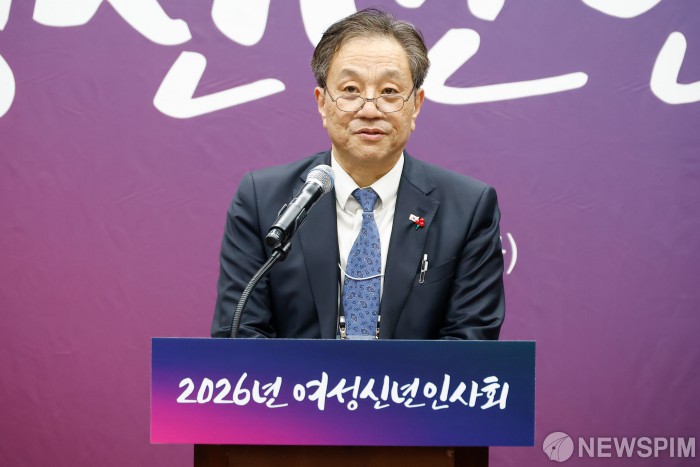 [서울=뉴스핌] 류기찬 기자 = 문진영 청와대비서실 사회수석이 23일 오후 서울 중구 은행회관에서 열린 2026년 여성신년인사회에서 이재명 대통령의 축사를 대독하고 있다. 2026.01.23 ryuchan0925@newspim.com