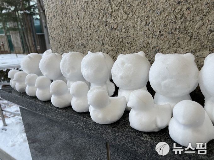 [광명=뉴스핌] 박승봉 기자 = 영하 16도를 밑도는 기록적인 '북극 한파'가 수도권을 강타한 24일 오전, 경기도 광명시 한 아파트 필로티 기둥에 아이들과 가족들이 정성스레 만들어 놓은 '눈오리'와 '눈고양이' 인형들이 줄지어 놓여 있다. 밤사이 내린 기습 폭설이 빚어낸 이 작은 눈 조각들이 매서운 추위 속에서도 시민들에게 소박한 겨울의 정취를 전하고 있다. 이날 광명시에는 5.7cm의 눈이 내렸다. 기상청에 따르면 당분간 아침 기온이 영하 10도 이하로 떨어지는 강추위가 지속될 전망이며, 내린 눈이 얼어붙어 빙판길 안전사고에 각별한 주의가 필요하다. 2026.01.24 1141world@newspim.com