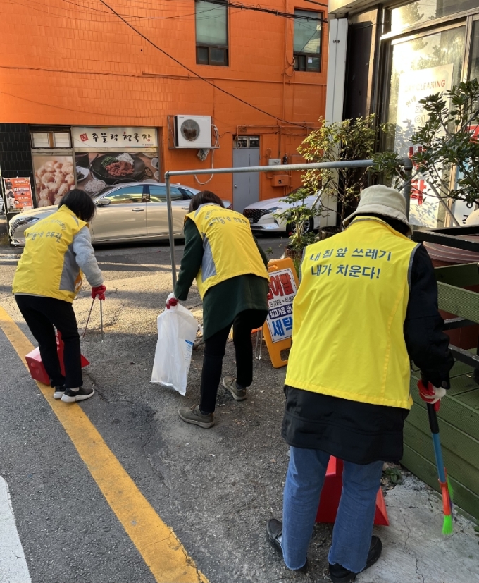 지난해 강감찬 일자리 참여자들이 거리를 청소하고 있다. [관악구 제공]