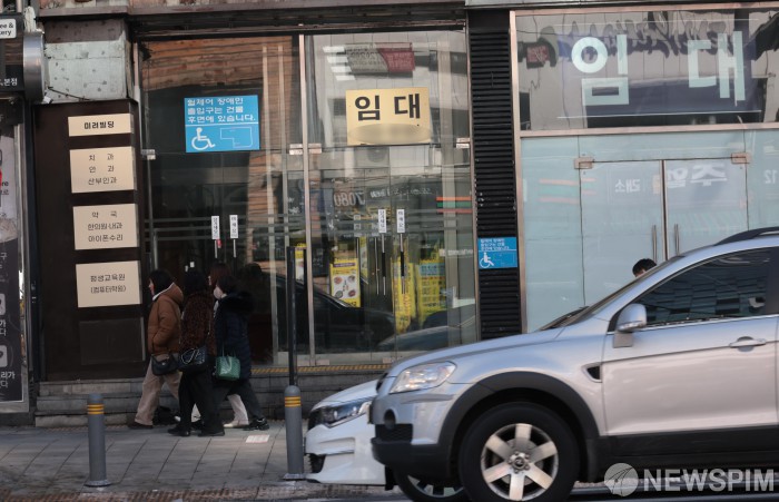 [서울=뉴스핌] 이길동 기자 =25일 서울 종로2가 대로변 건물에 임대 문구가 붙어 있다.지난해 민생회복 소비쿠폰 등 경기 보강책에도 자영업자가 2년 연속 3만명대 감소세를 이어갔다. 특히 20대·30대 청년 계층에서 자영업자 수 감소가 컸던 것으로 확인됐다.이날 국가데이터처의 국가통계포털(KOSIS)에 따르면 지난해 취업자 가운데 자영업자는 562만명으로 전년보다 3만 8000명 줄었다. 코로나19 사태 당시인 2020년 이후로 5년 만에 감소폭이 가장 컸다.2026.01.25 gdlee@newspim.com