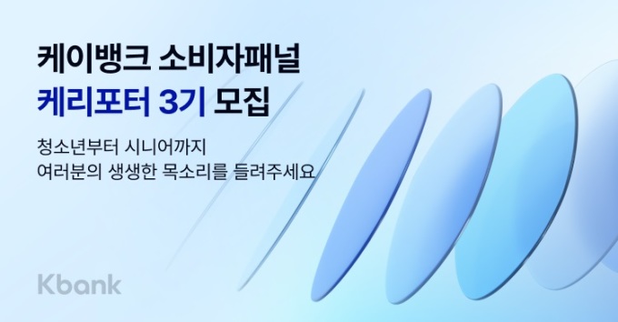 [서울=뉴스핌] 채송무 기자 = 케이뱅크는 26일 금융소비자 목소리를 반영하기 위한 소비자패널 '케리포터' 3기를 모집한다고 밝혔다.