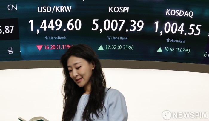 [서울=뉴스핌] 양윤모 기자 = 26일 오전 코스피가 전장 종가보다 17.32 포인트(0.35%) 상승하며 5007.39로, 코스닥은 10.62포인트(1.07%) 상승한 1004.55로 장을 시작한 가운데, 서울 중구 하나은행본점 딜링룸에서 직원들이 업무를 보고 있다. 서울외환시장에서 달러/원 환율은 전장 대비 16.20원 하락한 1449.60원에 주간거래를 시작했다. 2026.01.26 yym58@newspim.com