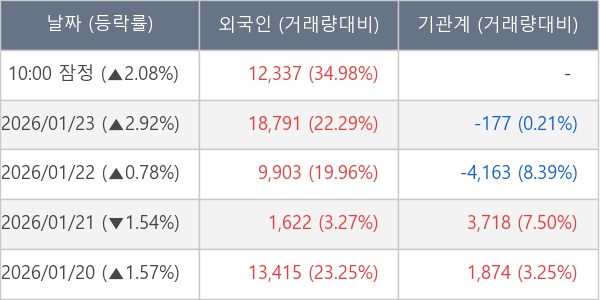 [표] 외국인ㆍ기관 순매매량 (단위 주)