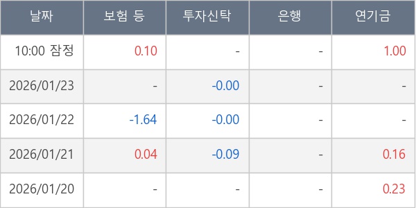 [표] 주요 기관별 순매매량 (단위 만주)