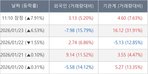 ※ 사모펀드 등 일부 기관의 순매매량은 표시되지 않음