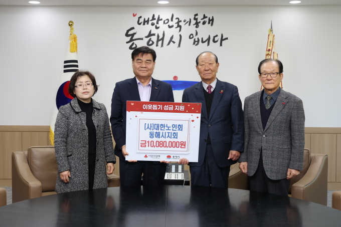[동해=뉴스핌] 이형섭 기자 = 대한노인회동해시지회는 관내 139개 경로당 회원들의 뜻을 모아 '희망2026나눔캠페인' 성금 1008만원과 시민장학금 3000만원을 동해시에 기탁했다고 26일 밝혔다.