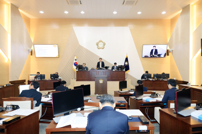 이날 본회의에서는 세무과 등 6개 부서의 2026년도 주요업무계획이 보고됐으며 의원들의 5분 자유발언과 현안 질의가 이어졌다.
