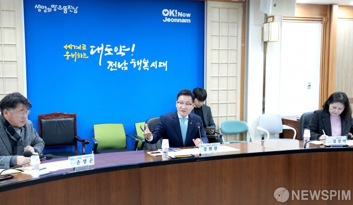 [무안=뉴스핌] 조은정 기자 = 강위원 전남도 경제부지사가 26일 오후 전남도청 정약용실에서 열린 '천일염 산업 활성화 간담회'에서 천일염 산업 발전방안 등 애로사항을 청취하고 최근 천일염 가격 하락에 따른 활성화 대책을 논의하고 있다. [사진=전남도]2026.01.26 ej7648@newspim.com