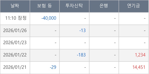 [표] 주요 기관별 순매매량 (단위 만주)