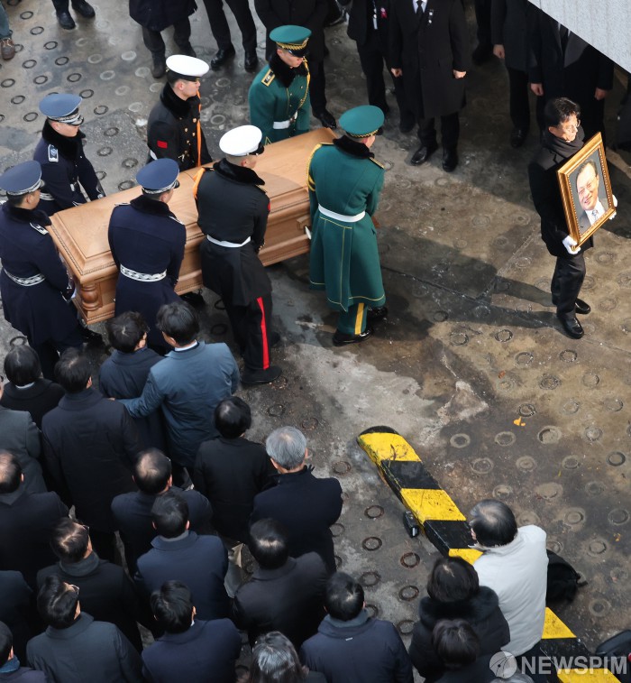 [서울=뉴스핌] 정일구 기자 = 베트남 출장 중 별세한 고(故) 이해찬 민주평화통일자문회의 수석부의장의 시신이 27일 오전 서울 종로구 서울대병원 장례식장으로 운구되고 있다. 2026.01.27 mironj19@newspim.com