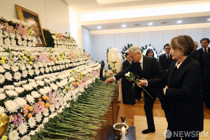 [서울=뉴스핌] 사진공동취재단 = 문재인 전 대통령과 김정숙 여사가 27일 오후 서울 종로구 서울대학교병원 장례식장에 마련된 고 이해찬 민주평화통일자문회의 수석부의장의 빈소를 찾아 조문하고 있다. 2026.01.27 photo@newspim.com
