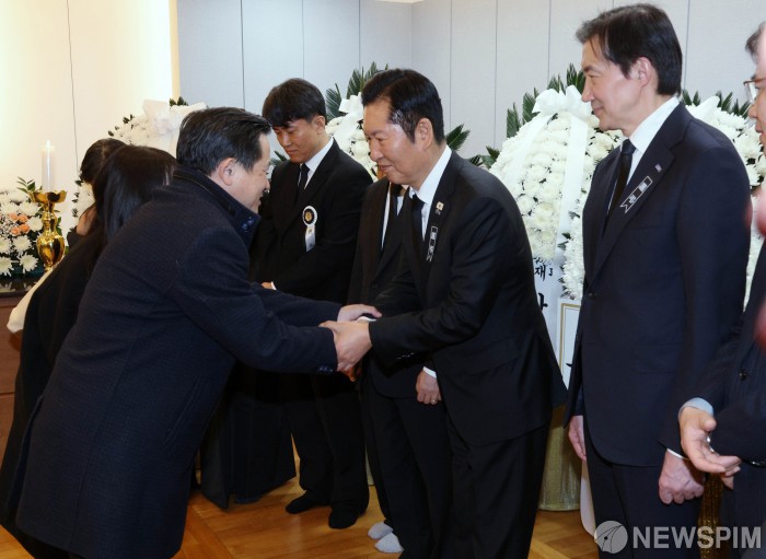 [서울=뉴스핌] 사진공동취재단 = 다이빙 주한중국대사가 27일 서울 종로구 서울대학교병원 장례식장에 마련된 이해찬 민주평화통일자문회의 수석부의장의 빈소를 찾아 정청래 더불어민주당 대표와 인사하고 있다. 2026.01.27 photo@newspim.com