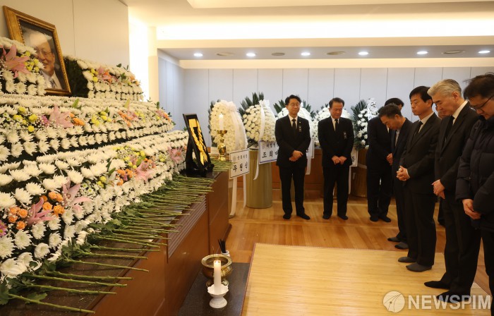 [서울=뉴스핌] 사진공동취재단 = 성 김 현대자동차 사장(오른쪽 두번째)이 27일 오후 서울 종로구 서울대학교병원 장례식장에 마련된 고(故) 이해찬 민주평화통일자문회의 수석부의장의 빈소를 찾아 조문하고 있다. 2026.01.27 photo@newspim.com