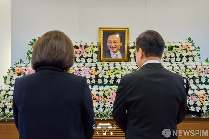 [서울=뉴스핌] 이재명 대통령이 지난 27일 서울 종로구 서울대학교병원 장례식장에 마련된 고(故) 이해찬 전 국무총리의 빈소를 조문하고 있다. [사진=대통령실] 2026.01.28 photo@newspim.com