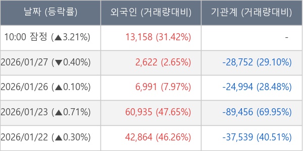 [표] 외국인ㆍ기관 순매매량 (단위 주)