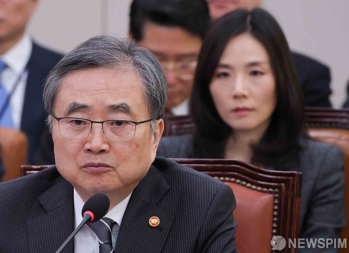 [서울=뉴스핌] 윤창빈 기자 = 조현 외교부 장관이 28일 서울 여의도 국회 외교통일위원회 전체회의에서 열린 미국 관세인상 관련 현안질의에서 의원 질문에 답변하고 있다. 2026.01.28 pangbin@newspim.com