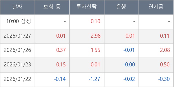 [표] 주요 기관별 순매매량 (단위 만주)