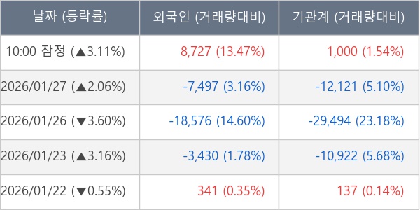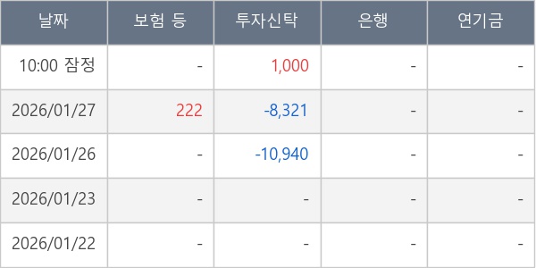 [표] 주요 기관별 순매매량 (단위 주)