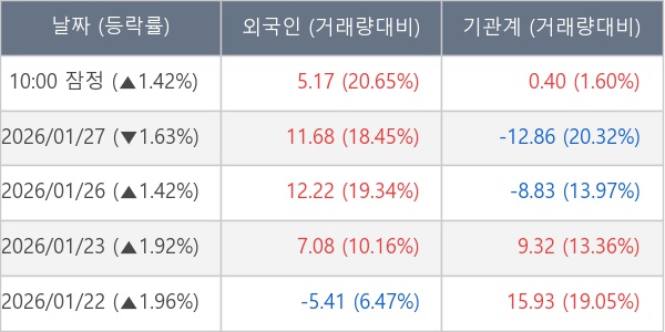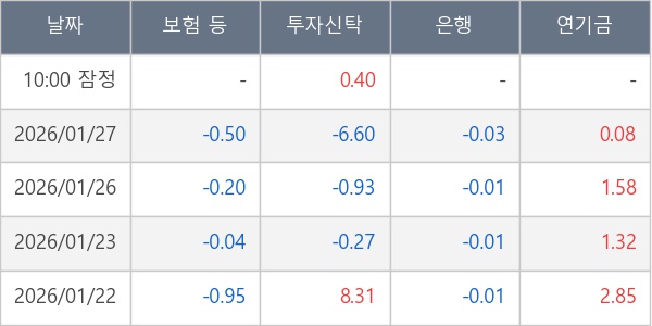 [표] 주요 기관별 순매매량 (단위 만주)