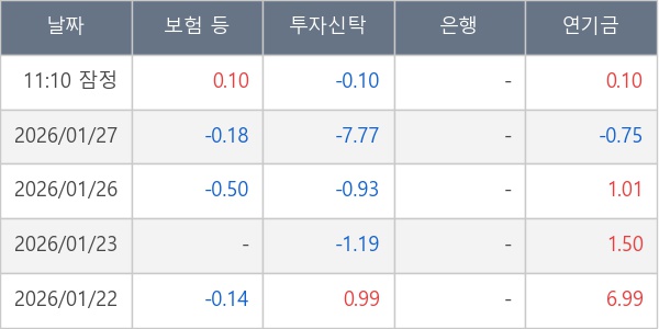 [표] 주요 기관별 순매매량 (단위 만주)