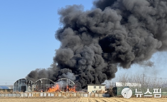 [평택=뉴스핌] 박승봉 기자 = 28일 오후 2시 37분경 경기 평택시 소사동의 한 창고용 비닐하우스에서 불이 나 소방당국이 진화에 나섰다.