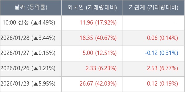 [표] 외국인ㆍ기관 순매매량 (단위 만주)