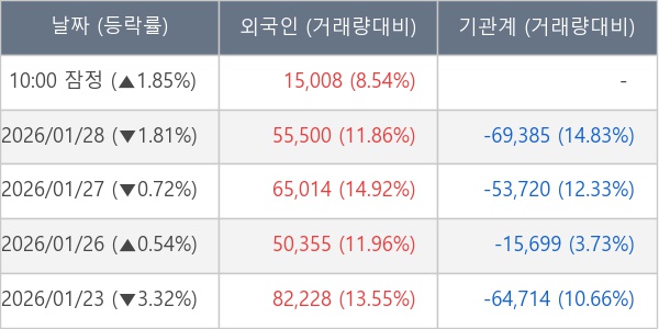 [표] 외국인ㆍ기관 순매매량 (단위 주)