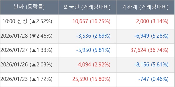 [표] 주요 기관별 순매매량 (단위 주)