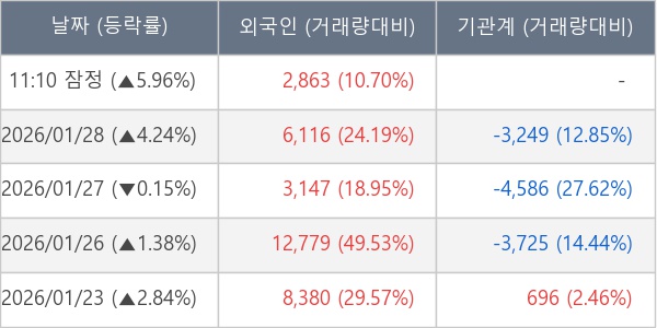 [표] 외국인ㆍ기관 순매매량 (단위 주)