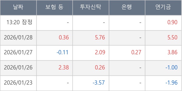 [표] 주요 기관별 순매매량 (단위 만주)