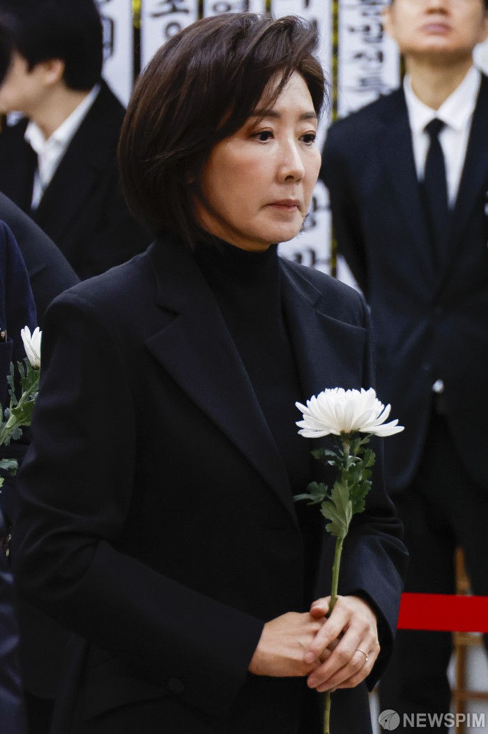 [서울=뉴스핌] 사진공동취재단 = 나경원 국민의힘 의원이 29일 서울 종로구 서울대학교병원 장례식장에 마련된 고(故) 이해찬 전 국무총리의 빈소에서 조문하고 있다. 2026.01.29 photo@newspim.com