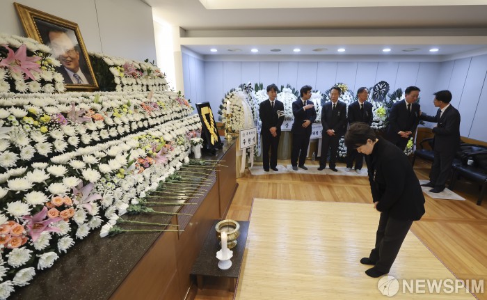 [서울=뉴스핌] 사진공동취재단 = 강금실 전 법무부 장관이 지난 29일 오후 서울 종로구 서울대학교병원 장례식장에 마련된 고(故) 이해찬 전 국무총리의 빈소에서 조문을 하고 있다. 2026.01.30 photo@newspim.com