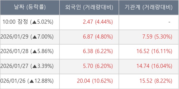 [장중수급포착] 로보티즈, 외국인 6일 연속 순매수행진... 주가 +5.02%