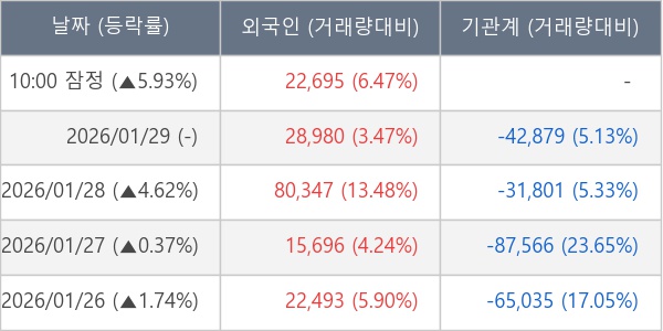 [표] 외국인ㆍ기관 순매매량 (단위 주)