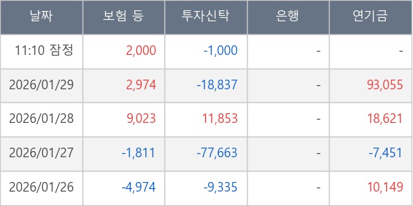 [표] 주요 기관별 순매매량 (단위 주)