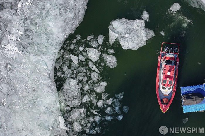 [서울=뉴스핌] 류기찬 기자 = 한파가 연일 기승을 부리고 있는 30일 오전 서울 광진구 광나루 한강변 인근에서 119 수난구조대 선박이 정박되어 있다. 2026.01.30 ryuchan0925@newspim.com