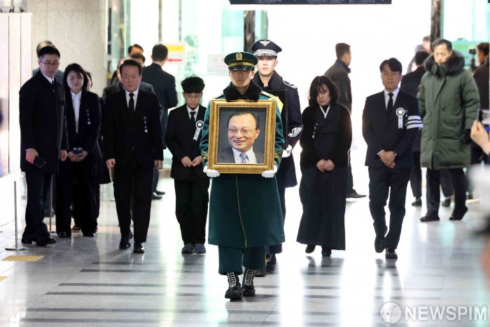 [서울=뉴스핌] 윤창빈 기자 = 이해찬 전 국무총리의 영결식이 열린 31일 오전 서울 여의도 국회 의원회관으로 이 전 총리 운구행렬이 도착하고 있다. 2026.01.31 pangbin@newspim.com